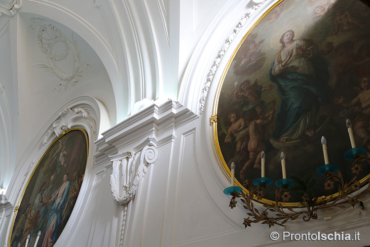Gli stucchi alle pareti sono stati invece realizzati da Francesco Starace, altro artigiano napoletano che, assieme al fratello Cesare, ha realizzato diversi lavori nella chiese di Ischia, per lo più nell’ultimo quarto del ‘700.