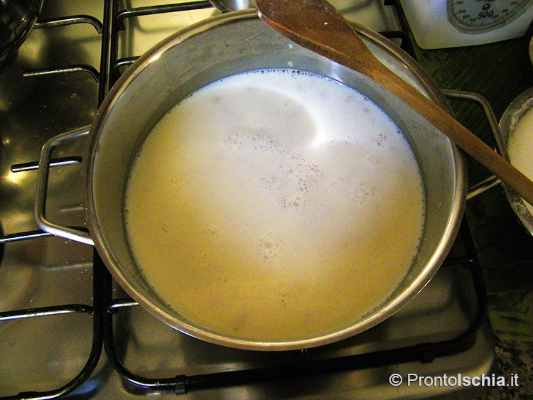 Anni addietro, anche se c’è chi ancora lo fa, si usava il grano fresco. Prima di cuocerlo, bisognava tenerlo a mollo per qualche giorno avendo premura di cambiare l’acqua quotidianamente. Oggi si usa il grano pre-cotto che occorre tenere sul fuoco max. 15/20 minuti, insieme al latte, una noce di burro, una scorza di arancia e una di limone (che andranno tolte a fine cottura). Il latte deve coprire rasente il grano, in modo da asciugarsi durante la cottura.