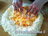 Nel frattempo in una terrina stemperare la ricotta, le uova e lo zucchero