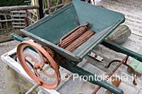 "palmenti", cui seguiva una seconda spremitura della vinaccia a mezzo di un rudimentale sistema di contrappesi fatto da grandi pali di legno collegati, tramite funi, a un enorme masso di tufo verde, la