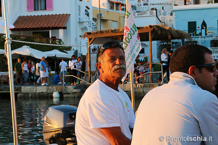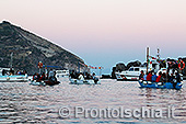 Decine di imbarcazioni seguono San Michele Arcangelo nella sua traversata da Punta Chiarito, la collina che cinge la baia di Sorgeto, fino alle Petrelle, dal lato opposto (rispetto a Sant’Angelo) della spiaggia dei Maronti. Addirittura, per i fedeli che non trovano posto sui taxi boat della cooperativa barcaioli di Sant’Angelo, c’è la possibilità di imbarcarsi su due motonavi normalmente impiegate per le gite turistiche nel Golfo di Napoli.