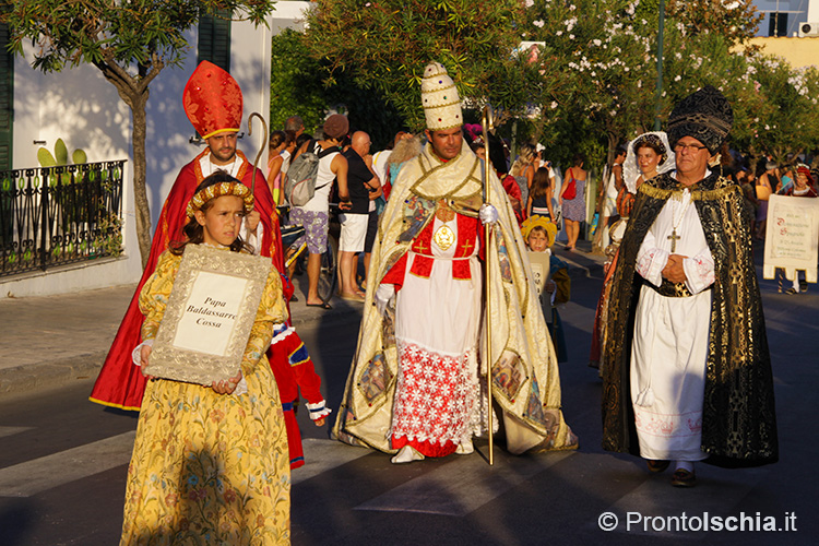 borgo di Sant’Alessandro fondarono l’Associazione Culturale Pro Loco Sant’ Alessandro con l'intento di ristrutturare la piccola chiesa del borgo e restituirle il più possibile l'architettura originaria. Si decise di organizzare anche una sfilata in costumi d'epoca che rievocasse l'intera vicenda storica dell'isola d'Ischia, dai primi colonizzatori greci fino alla dominazione borbonica. E così da più di 30 anni ormai, il 26 agosto, giorno di ricorrenza del Santo, un fastoso corteo di oltre duecento figuranti parte, al calar del sole, dal Castello aragonese, attraversa per intero il corso principale del comune di Ischia e termina nella piccola contrada di Sant'Alessandro. Giunti a destinazione viene celebrata una messa nella piccola chiesa cui fanno seguito i classici festeggiamenti con degustazione di prodotti tipici e accompagnamento musicale. L'ordine della sfilata segue grosso modo quello delle diverse dominazioni a cui è stata asservita nei secoli l'isola d'Ischia: i coloni euboici di Pithekussai; gli Angioini e gli Aragonesi, il Rinascimento con la poetessa Vittoria Colonna; il Settecento di Carlo III; la breve stagione francese con Gioacchino Murat, fino al periodo borbonico dominato dalla figura di Ferdinando II. Alla sfilata di Sant’Alessandro hanno partecipato anche altre importanti associazioni provenienti da tutta Italia come gli sbandieratori Torri Metelliani di Cava de' Tirreni; i "Mammuttones", figuranti del carnevale di Mamoiada in Sardegna; il gruppo folkloristico scozzese di Aberdeen, senza dimenticare il locale gruppo della n'drezzata di Barano d'Ischia.