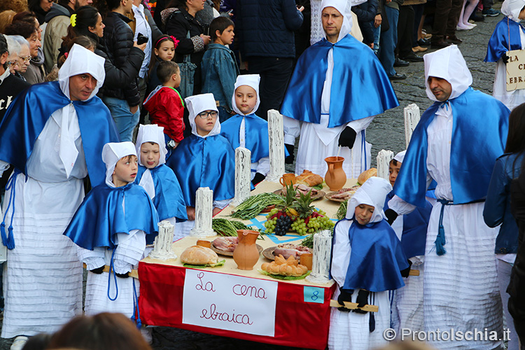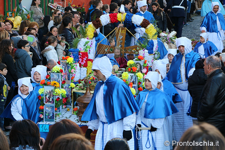 Costume, folclore, religione. I tre aspetti sono ormai inscindibili, al punto che gli episodi della Morte di San Giovanni Battista, l’arresto di Gesù nell’Orto degli Ulivi, il processo davanti a Ponzio Pilato, il Golgota, sono intrisi di temi domestici, procidani, a cui si aggiungono numerosi richiami alla storia recente e all’attualità.