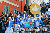 angioletti" vestiti di nero con ricami dorati la parte più bella e toccante del corteo. I padri con la divisa bianca e azzurra della Congrega portano in processione i figli più piccoli, ancora più piccoli di quelli che hanno aperto la sfilata dei carri.