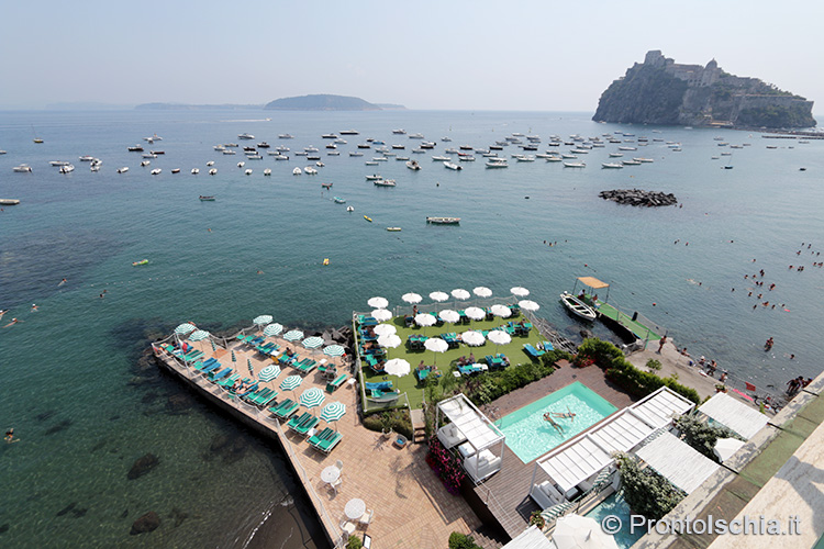 Il nome dell’albergo dice già tutto. A far da sfondo all’Hotel Miramare e Castello sono il mare e la vista, ravvicinatissima, del Castello Aragonese. Come l’hotel San Montano, anche il Miramare e Castello è un 5 Stelle dall’inconfondibile stile mediterraneo. Per rendersi veramente conto di cos’è l’architettura mediterranea, è necessaria una sosta sulla terrazza panoramica dell’albergo. La vista del borgo di Ischia Ponte, da un lato, e della Mandra, dall’altro, è quel che ci vuole per ritrovare l’armonia perduta e liberarsi immediatamente dello stress accumulato a causa del lavoro. Consigliato.