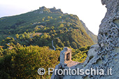 Il panorama, certamente meraviglioso, non è però la migliore prospettiva per godere della magia del tramonto ischitano. Occorre proseguire per il sentiero che porta alla "Pietra dell’Acqua", un mega blocco di tufo così chiamato perchè scavato all’interno per farne una cisterna di raccolta dell’acqua piovana. Sono proprio i pendii della "Cresta dell’Isola" (l’altro nome con cui è conosciuto questo sentiero), il posto migliore per godere del tramonto ischitano con lo sfondo, assai suggestivo, delle isole pontine Ventotene e Santo Stefano.